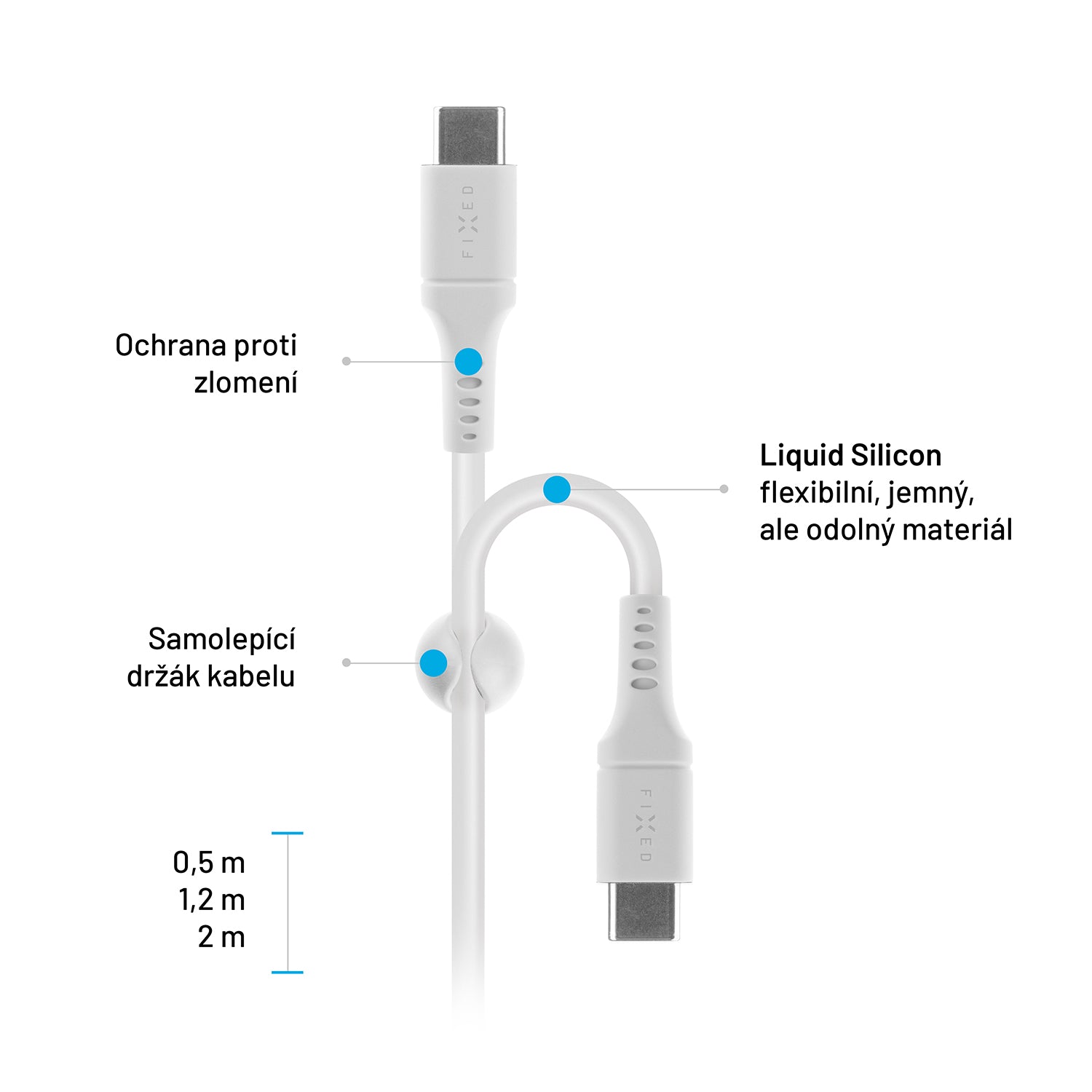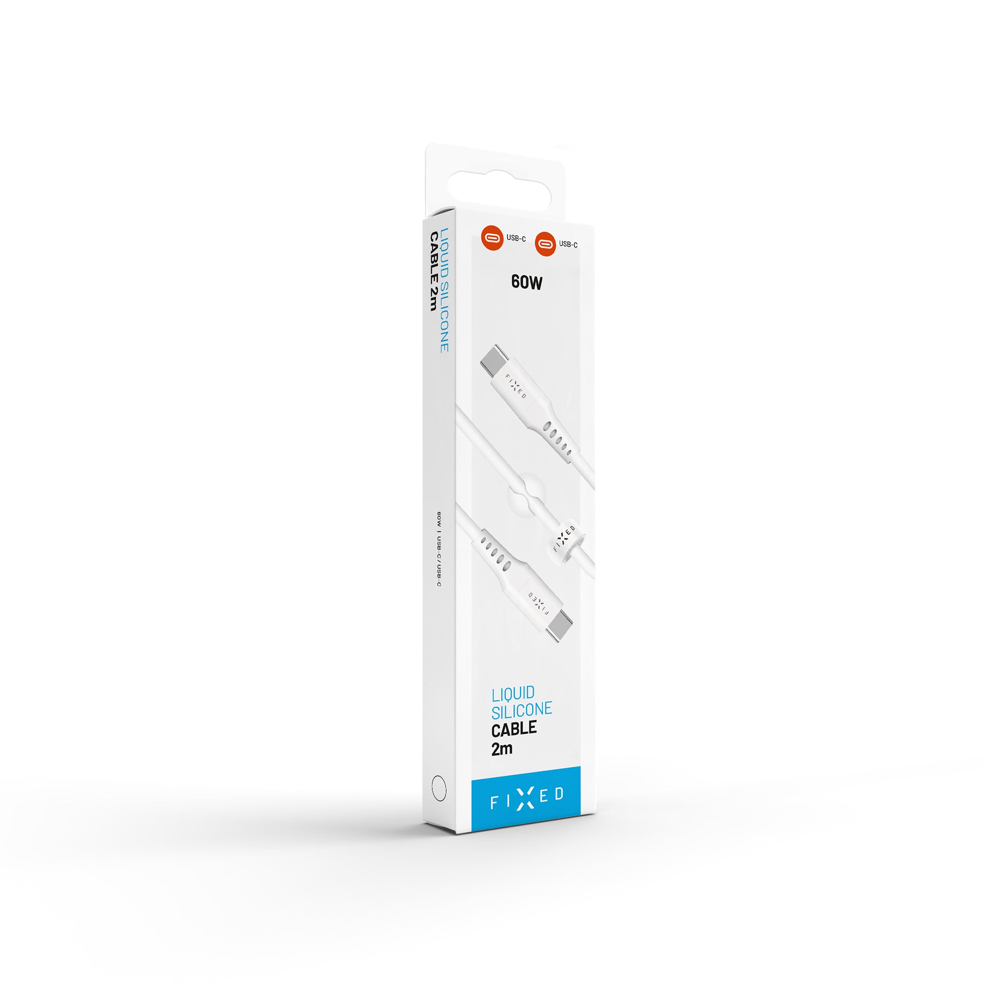 Dlouhý nabíjecí a datový Liquid silicone kabel FIXED s konektory USB-C/USB-C a podporou PD, 2m, USB 2.0, 60W, bílý