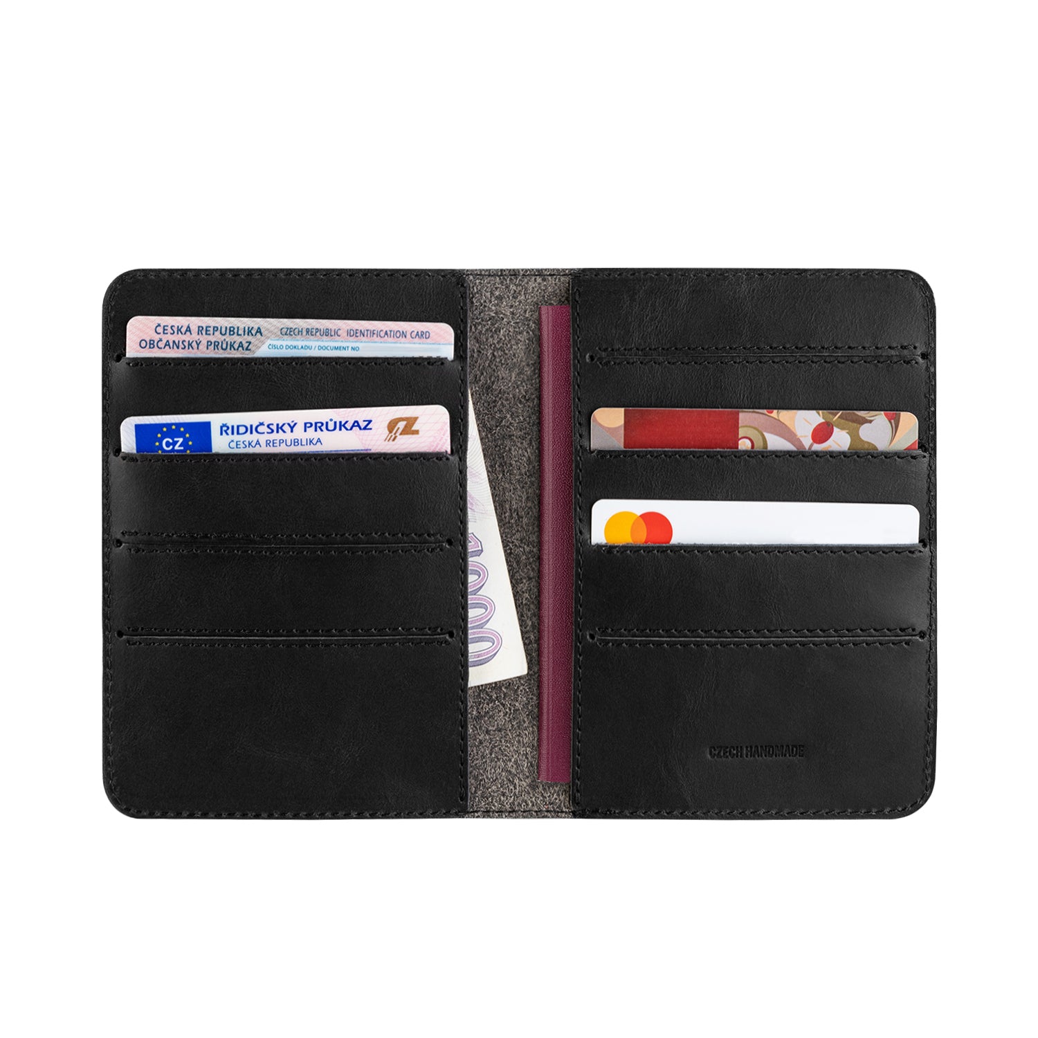Luxusní peněženka ručně vyrobená z té nejkvalitnější hovězí kůže, ve které bude vše důležité na dovolenou nebo služební cestu. Uvnitř najdete dostatek místa pro cestovní pas, osobní doklady, kreditní karty i bankovky. Na cestách tak budete mít všechno pohodlně po ruce.