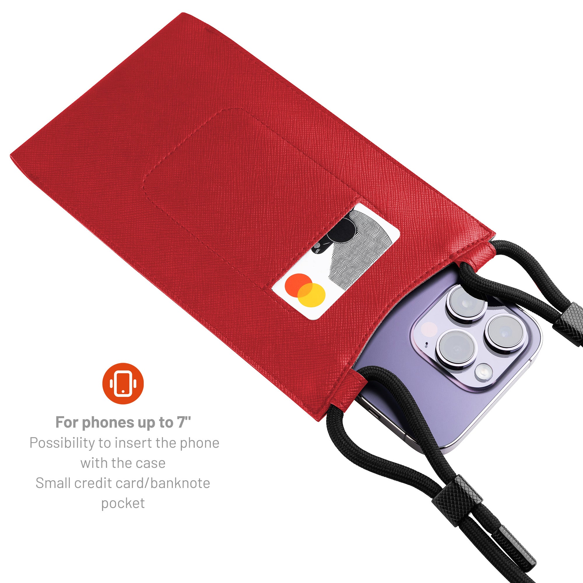 Taštička přes rameno s kapsou FIXED Verona s černou šňůrkou pro mobilní telefony do 7", červená