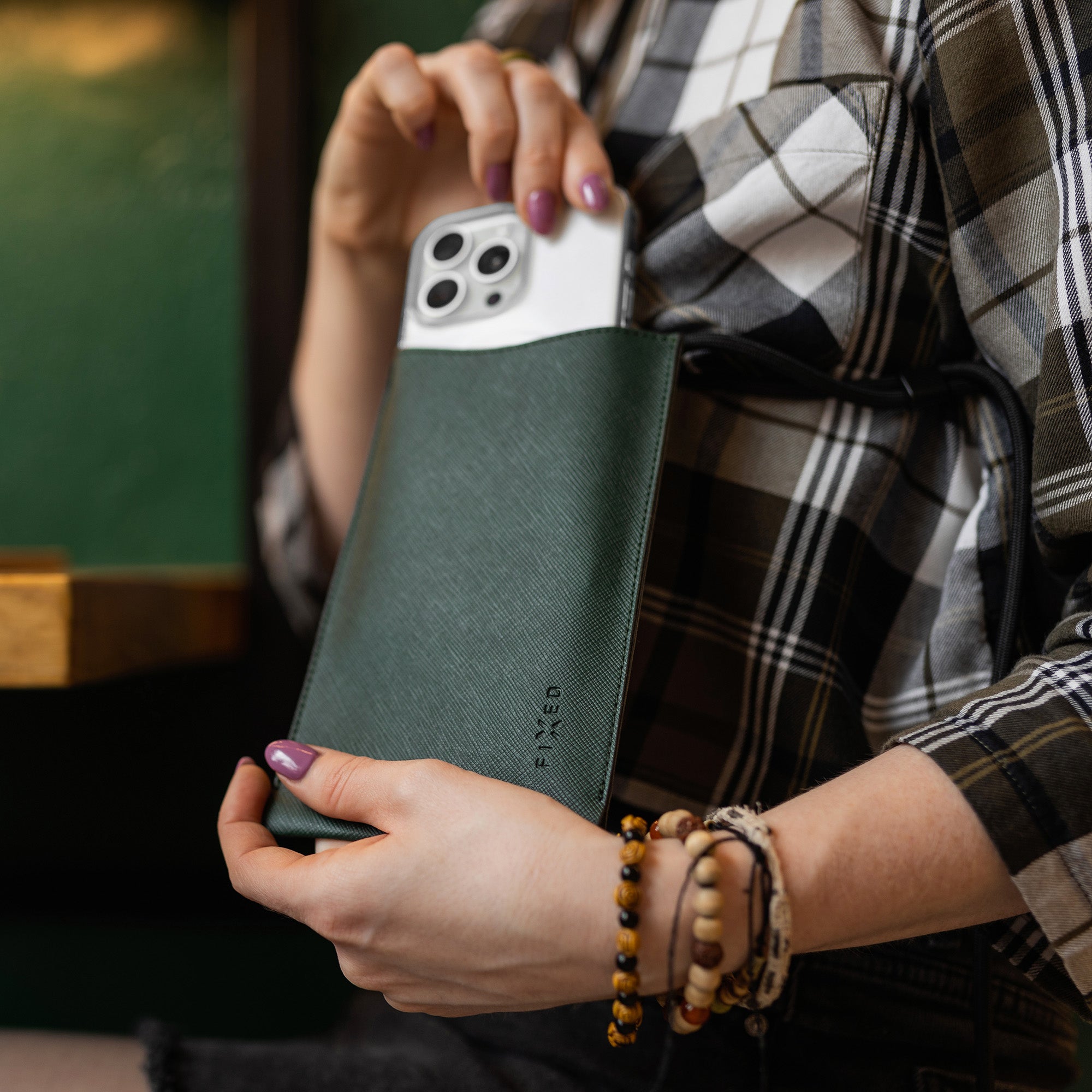 Elegantní taštička FIXED Verona je praktickým doplňkem pro váš telefon a jiné nezbytnosti. Hlavní kapsa je uzpůsobena pro většinu mobilních telefonů s uhlopříčkou až 7"" a poskytuje tak dostatek prostoru i pro telefony opatřené krytem. Pro karty, doklady nebo bankovky je ideální menší kapsa, která je při nošení diskrétně skryta z druhé strany taštičky. Každý kus je ručně vyroben v naší prostějovské dílně z kvalitní koženky s designem Saffiano, pro který je typické diagonální šrafování. Materiál se tak stává odolný proti škrábancům nebo jinému poškození a zároveň je velice příjemný na dotek. Pro variabilní nošení je taštička vybavena pevnou šňůrou s nastavitelnou délkou. Moderní barevný odstín taštičky doplní každý outfit a okamžitě se stane nepostradatelným společníkem, ať vyrážíte do města nebo na výlet.