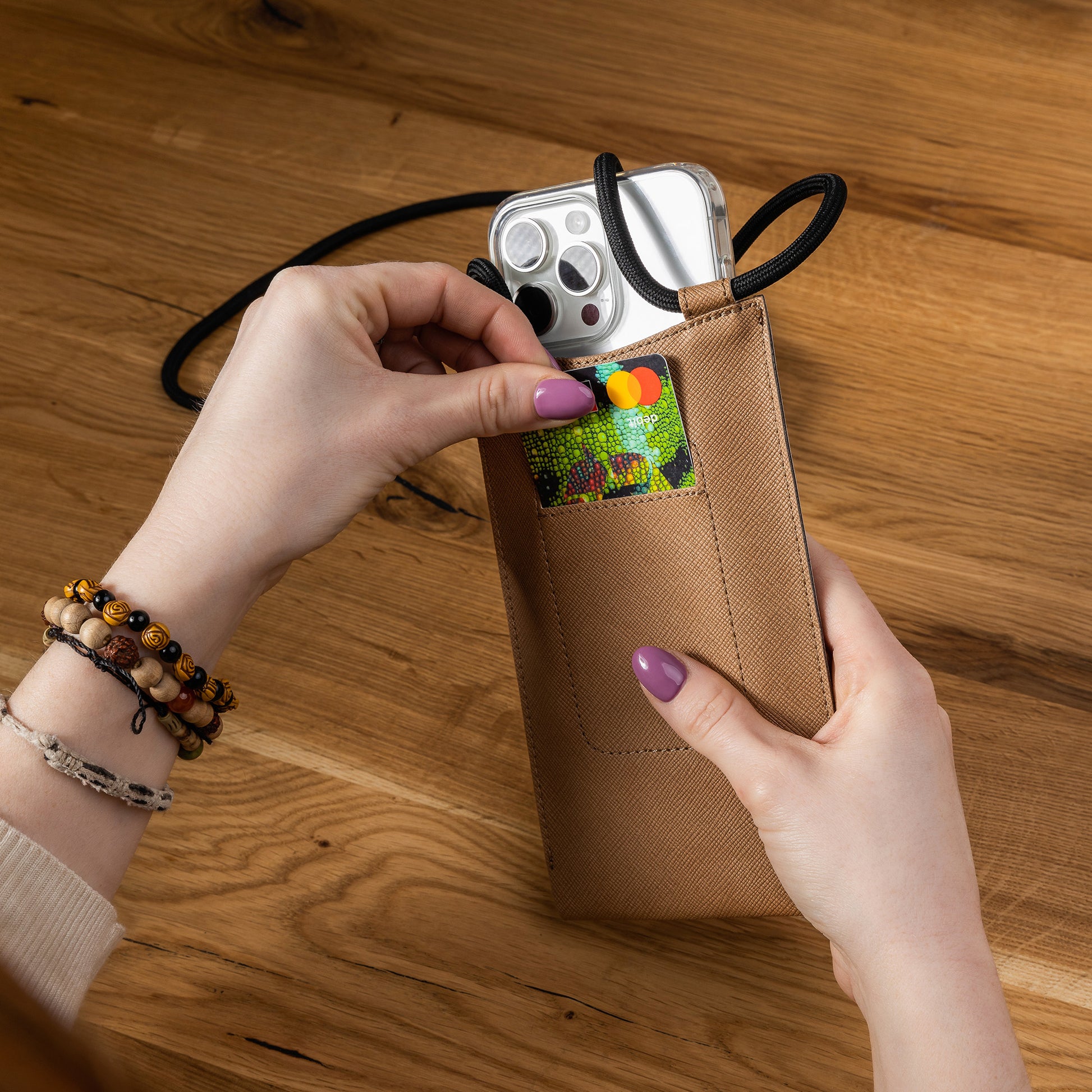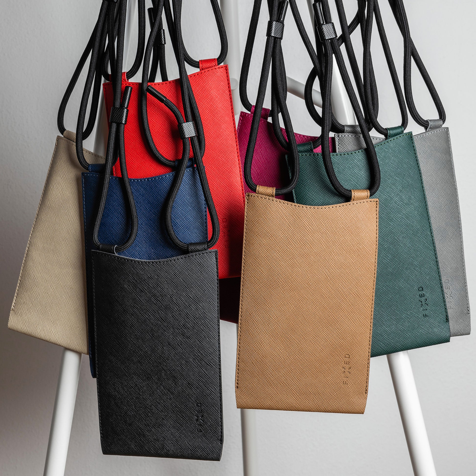 Elegantní taštička FIXED Verona je praktickým doplňkem pro váš telefon a jiné nezbytnosti. Hlavní kapsa je uzpůsobena pro většinu mobilních telefonů s uhlopříčkou až 7"" a poskytuje tak dostatek prostoru i pro telefony opatřené krytem. Pro karty, doklady nebo bankovky je ideální menší kapsa, která je při nošení diskrétně skryta z druhé strany taštičky. Každý kus je ručně vyroben v naší prostějovské dílně z kvalitní koženky s designem Saffiano, pro který je typické diagonální šrafování. Materiál se tak stává odolný proti škrábancům nebo jinému poškození a zároveň je velice příjemný na dotek. Pro variabilní nošení je taštička vybavena pevnou šňůrou s nastavitelnou délkou. Moderní barevný odstín taštičky doplní každý outfit a okamžitě se stane nepostradatelným společníkem, ať vyrážíte do města nebo na výlet.