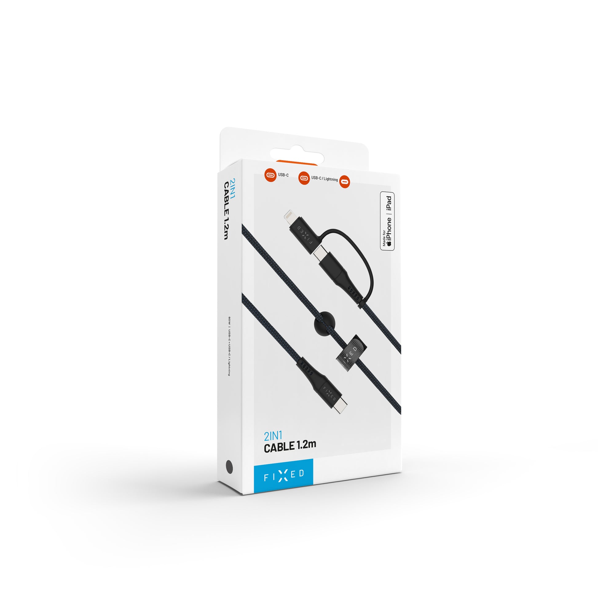 Nabíjecí a datový kabel FIXED 2v1 díky USB-C/USB-C konektorům a přídavnému Lightning adaptéru nabízí univerzální využití pro široké spektrum zařízení, včetně smartphonů, tabletů, notebooků a Apple příslušenství. MFi certifikace zajišťuje plnou kompatibilitu s Apple zařízeními a jejich bezpečný provoz. S výkonem až 60W a podporou Power Delivery 3.0 rychle nabijete telefon nebo tablet, zatímco datový přenos s rychlostí 480 Mbps ve standardu USB 2.0 umožňuje snadné sdílení souborů. Pro dlouhou životnost je kabel vybaven odolným textilním opletem s žebrovaným zakončením, které odolává každodennímu používání. Součástí kabelu je stahovací pásek pro snadné přenášení, a nalepovací organizér umožní jeho pevné uchycení na pracovní desce nebo v autě.