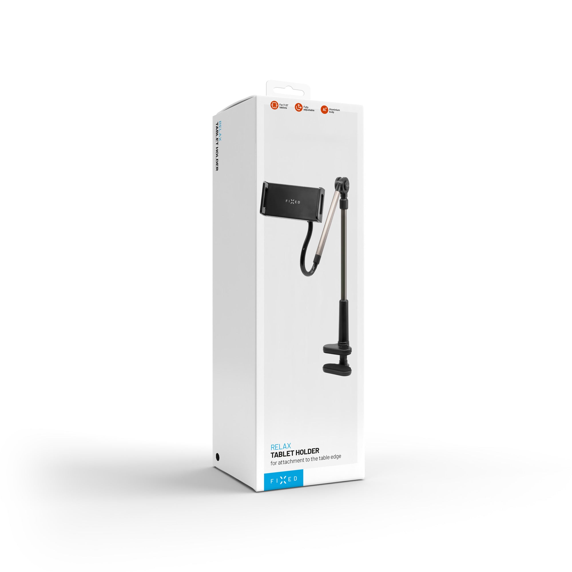 Univerzální držák na tablet/telefon pro upevnění na stůl FIXED Relax s otočným a nastavitelným ramenem, černý
