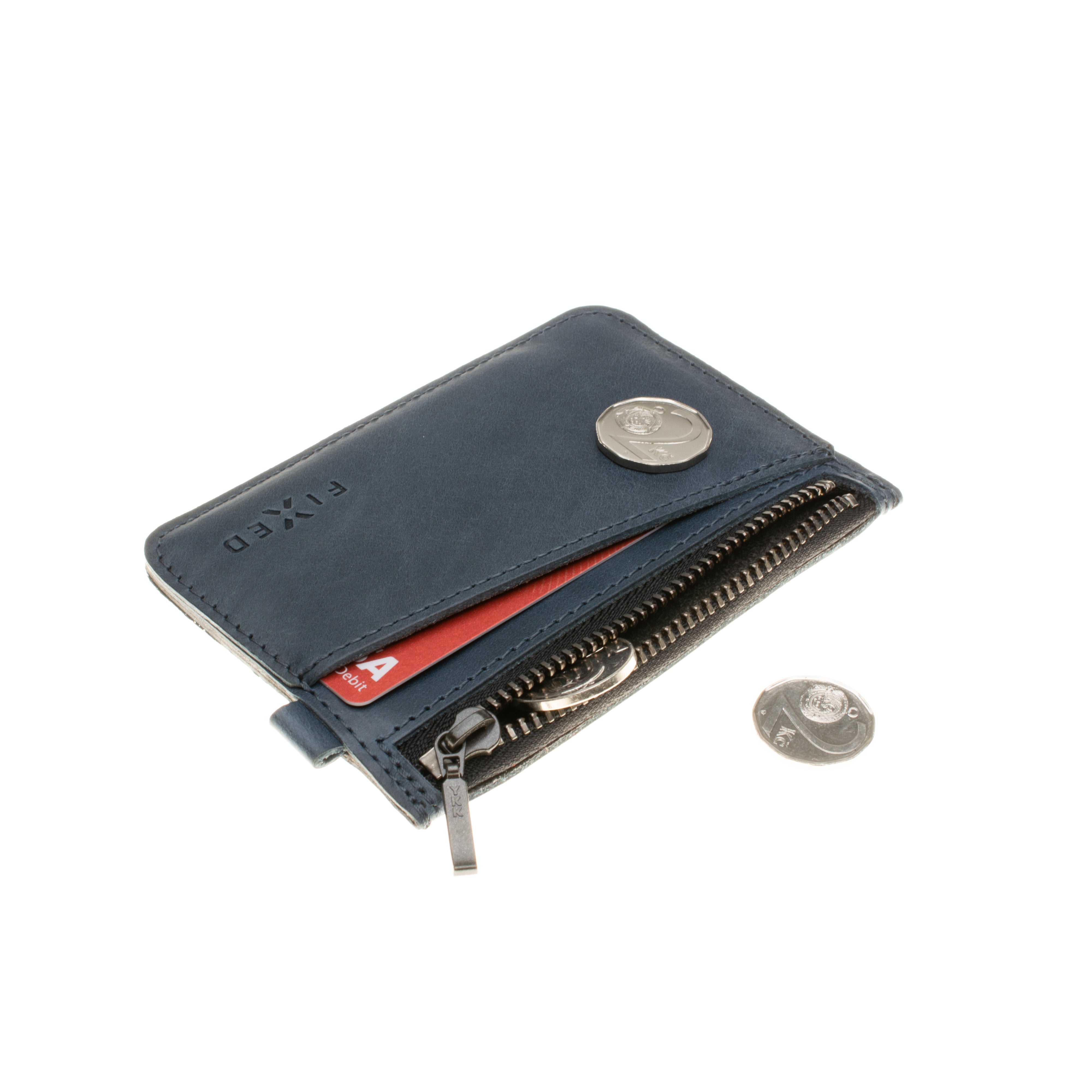 Kožená peněženka FIXED Coins, modrá