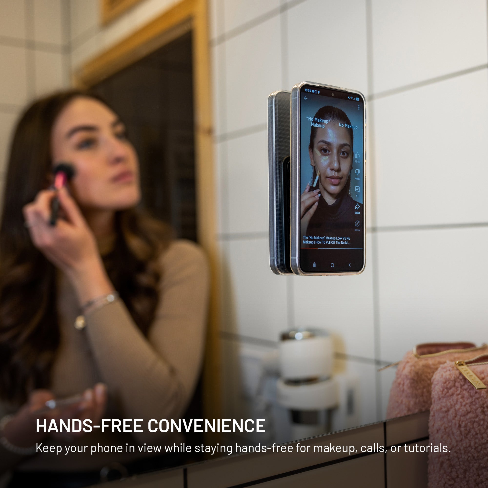 Silikonový přísavkový držák FIXED MagMate s MagSafe uchycením přináší jednoduchý způsob, jak mít telefon stále na očích bez nutnosti ho držet v rukách. Přísavková strana pevně drží na zrcadle, skle či jiném hladkém povrchu, zatímco MagSafe magnet bezpečně přichytí iPhone 12 a novější nebo jakýkoli telefon s MagSafe pouzdrem. Lze tak snadno pořizovat fotografie, videa nebo mít obrazovku telefonu stále na očích při vaření, cvičení nebo líčení. Oproti samolepicím alternativám se na telefon nepřipevňuje napevno, ale díky magnetickému uchycení ho snadno kdykoliv sundáte. Povrch z prémiového Liquid silikonu je omyvatelný, odolný a zároveň příjemný na dotek. Díky ultratenkému 7mm provedení držák splývá s telefonem a téměř nezvětšuje jeho velikost. Minimalistické řešení FIXED MagMate vám usnadní každodenní používání telefonu, ať jste kdekoliv.
