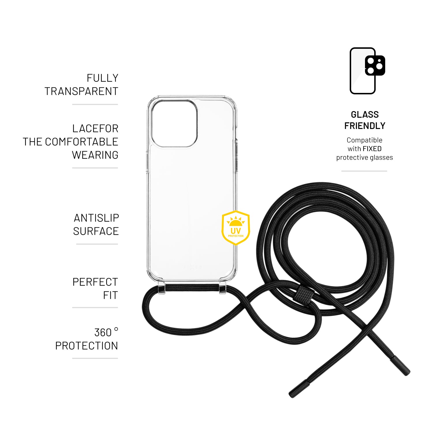 The stylish FIXED Pure Neck case allows you to carry your phone at hand at all times while keeping it nicely safe from all the pitfalls of everyday life. Thanks to the handy adjustable-length lanyard that is threaded through the bottom of the cover, you can wear your phone comfortably around your neck or over your shoulder, it's up to you. The case itself is made of durable transparent TPU with protection against yellowing due to sunlight. It will safely protect your phone from any drops or bumps. it's designed to fit the exact type of phone, so all control buttons and camera remain fully accessible. The Pure Neck case offers a practical alternative to carrying your phone whether you're heading out on the town or on a trip.