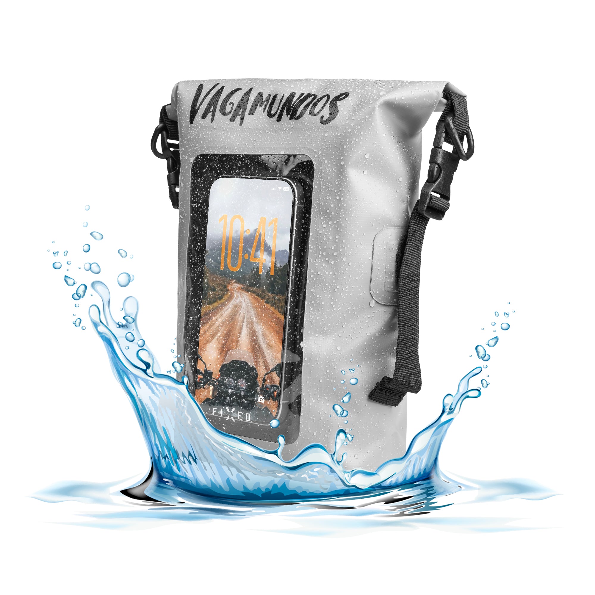 The waterproof FIXED Float Bag was created specifically for the field and tested its capabilities on an expedition with the Wanderers – Pavel Liška, Honza Révai and Hynek Bernard. On their adventurous journeys, it became an indispensable assistant for protecting all the necessities, and especially their most valuable member – Dr. Stingl. This sturdy, waterproof bag was his home when he traveled with them as a puppet through the jungle, played a play for the natives and survived tropical downpours. With its 3-liter capacity, the Float Bag will take care of the most important things you always want to have with you-your mobile phone, wallet, documents or even a puppet. The inner lockable pocket with a touch-sensitive inner pocket can hold a phone up to 7.5" in size and protect it from water and scratches from other items inside. The bag itself is made of strong PVC 500D material, which can withstand rough handling and any weather conditions. The roll-up closure system offers two options for closing-from the top or from the side, for a secure seal. The bag is complemented by an adjustable strap for carrying over the shoulder or crossbody, or you can easily attach it to a backpack. Whether you are going on a boat, on a trek or just to the pond behind the house-with this bag you will always be "dry".