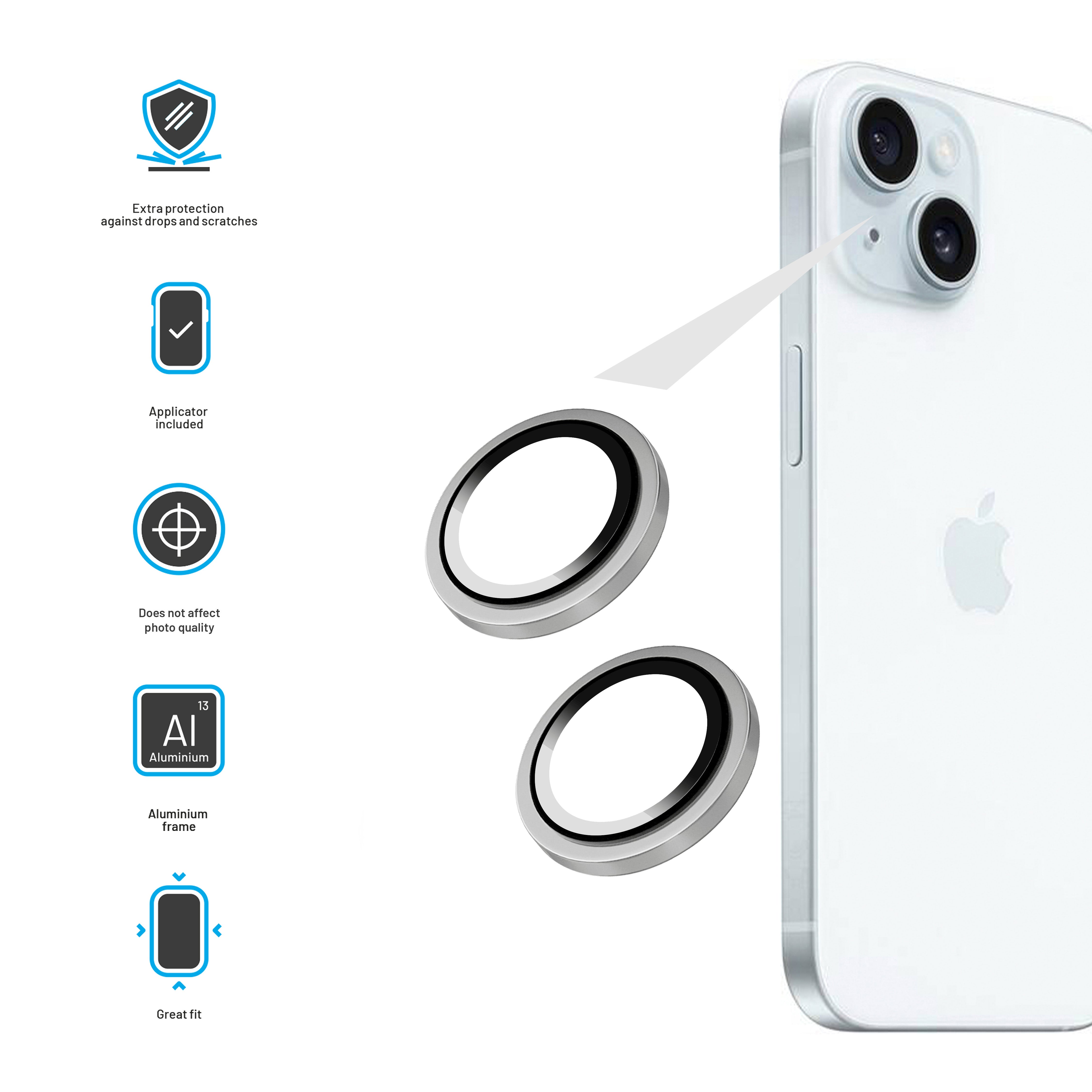 FIXED Camera Glass for Apple iPhone 15/15 Plus, silver