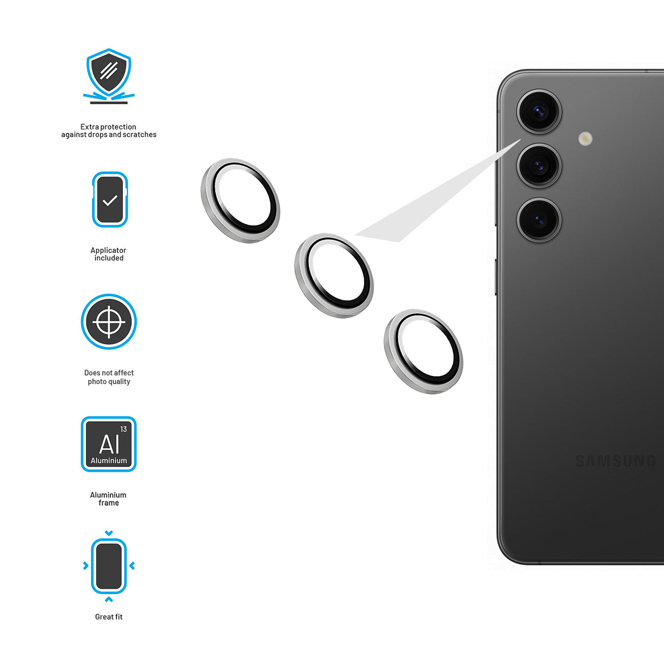 Protective glass FIXED Camera Glass designed for the camera lens of your phone is a practical addition for complete protection of your device. It is a set of separate protective glasses, each of them protects one of the camera lenses. Perfectly protects against scratches that would negatively affect your photos. The glasses are made exactly to measure for the phone model, they are protected around the edge by a hardened aluminum frame in the color of the phone. Camera Glass is 100% transparent and does not affect the resulting quality of photos. The minimum thickness of the glass does not exceed the possible protective cover of the phone, so it does not interfere when the phone is placed back to back. In the package you will find everything you need for easy installation.