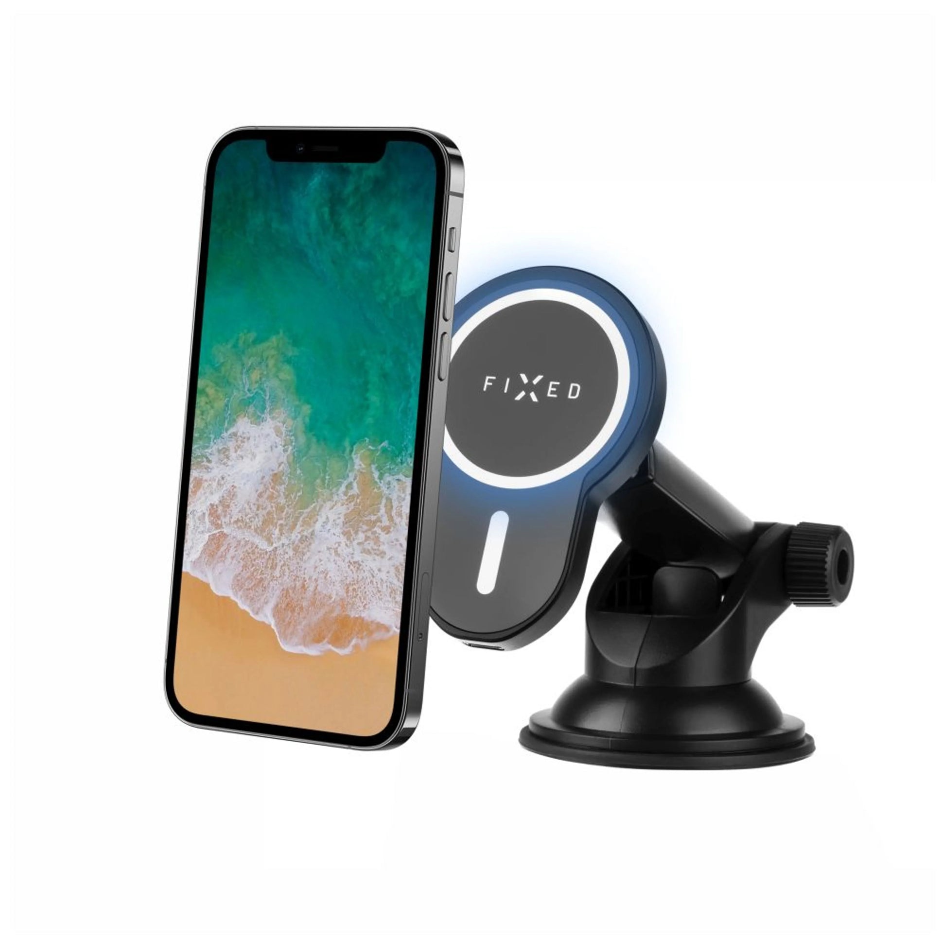The FIXED MagClick XL holder with an extended leg, developed directly for the latest Apple iPhone with MagSafe function, allows you to keep your phone in sight in the car and at the same time conveniently charge it while driving. Thanks to the integrated magnets, all you have to do is place the phone on the holder and it will immediately secure itself using MagSafe. It holds securely and can easily withstand all shocks caused by driving. For fast charging of your iPhone, the MagClick holder is equipped with a high-performance coil with a power of 7.5W and up to 15W for other smartphones, so it can replenish energy in the shortest possible time. The holder is intended for attachment to the glass and dashboard using a suction base. Using the swivel joint and the adjustable arm, you can adjust the phone to the ideal angle so that it is in plain sight when needed. With the FIXED MagClick holder, driving with your phone in the car will be more comfortable and above all safer than ever.