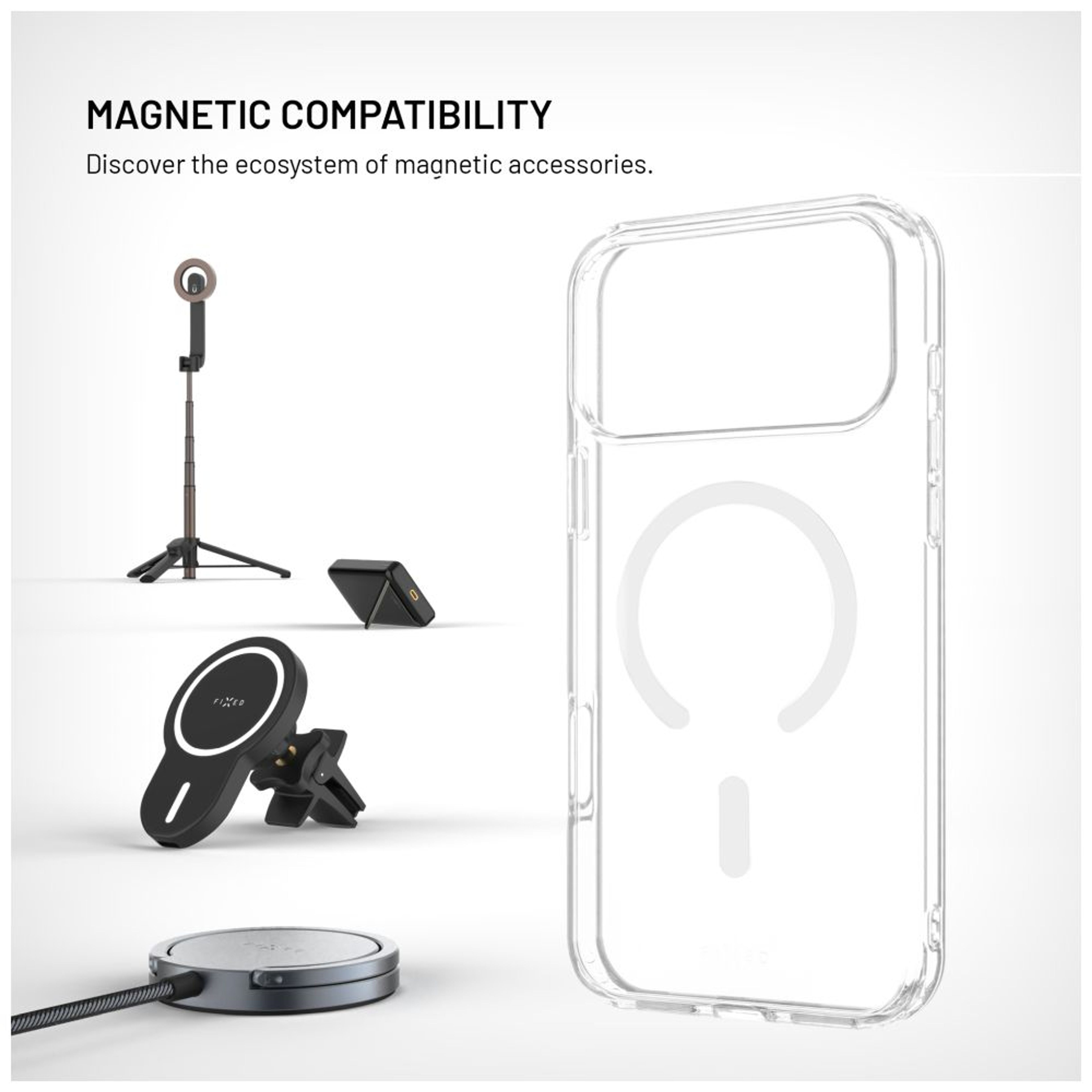 The FIXED MagPure hardened back cover with MagSafe support will reliably keep your smartphone safe from all the pitfalls of everyday life. The corners of the cover and the sides are made of TPU and are resistant to drops and impacts, the back is made of extra hardened polycarbonate, which resists all scratches. Thanks to the integrated magnets in the back, the MagPure cover works perfectly with all MagSafe accessories. Wireless charging will be easier and more efficient than ever before, just click the MagSafe charger directly to the cover. The raised edges in the corners on the back of the cover will provide additional protection when placed on a table, and the raised edges around the perimeter protect the display. FIXED MagPure is designed exactly to the given phone model, fits perfectly and also thinks about the control button covers and precise cutouts for the speakers, charging connector and camera.
