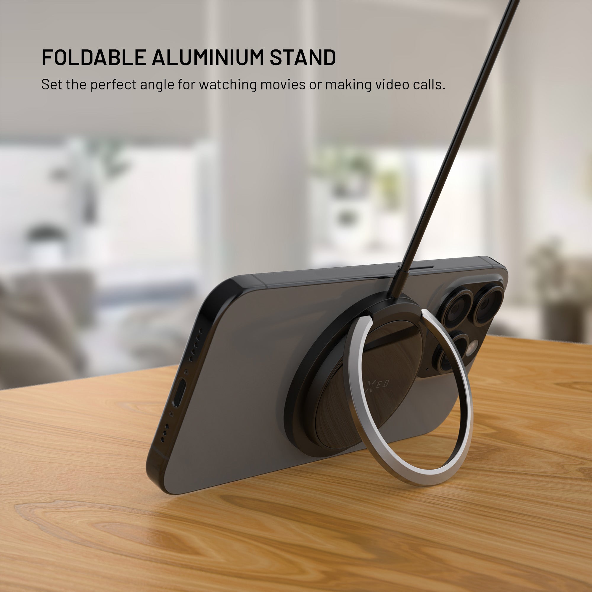 The rear metal flip stand allows you to conveniently position your phone in a vertical or horizontal position - ideal for video calls, watching content or reading. The solid metal alloy ensures perfect stability and long life.