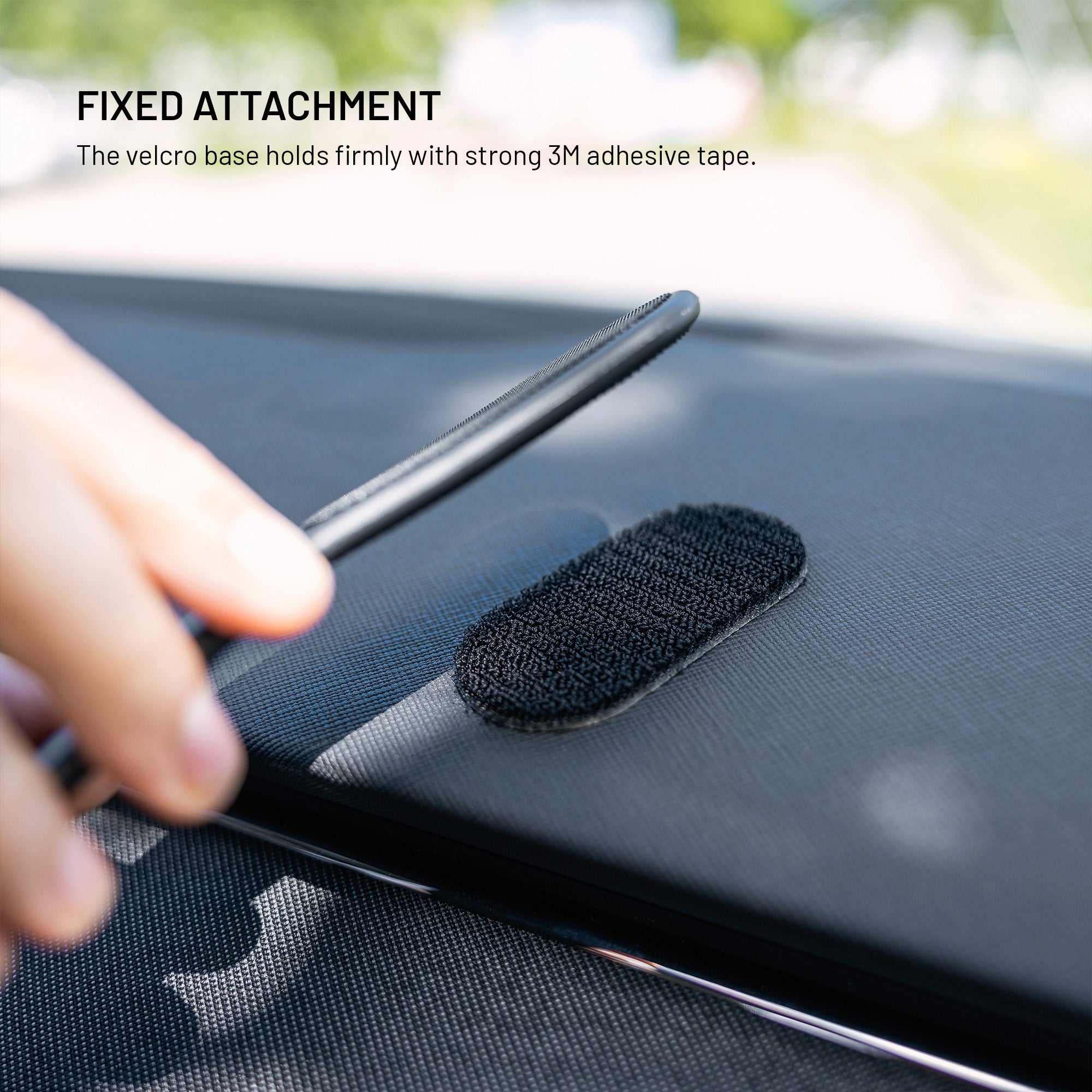 Simply stick the Velcro strips where you want the holder. Installation takes just a few seconds and you can move the holder at any time. No screws, no drilling.