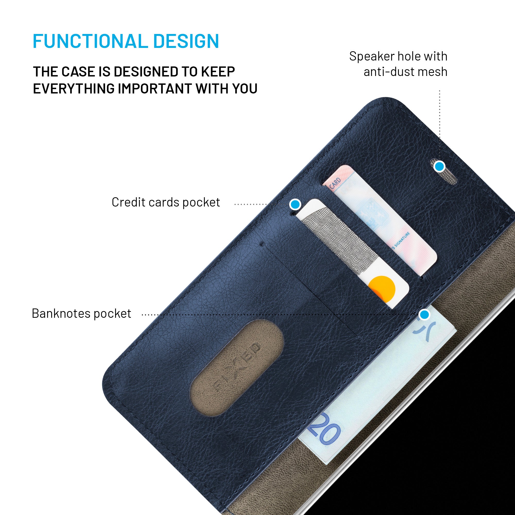 The new elegant design of the FIXED Opus flip case will keep your smartphone safe from all the pitfalls of everyday life. It is designed exactly for the given phone model and covers all its parts, including the display. The Opus case is made of durable synthetic leather, which can withstand even rough handling, while maintaining a decent appearance for the case. Thanks to the slim design, the case only minimally increases the dimensions of the phone and thus fits comfortably in your pocket or purse. After opening the front part, you will find a larger pocket for banknotes and three smaller compartments, which are used to store credit cards. A magnetic lock ensures safe closing of the case. The open case can be adjusted horizontally to the stand position for comfortable video viewing. The FIXED Opus case is the right accessory for your phone, which protects against falls, scratches and dirt, and it also looks great.
