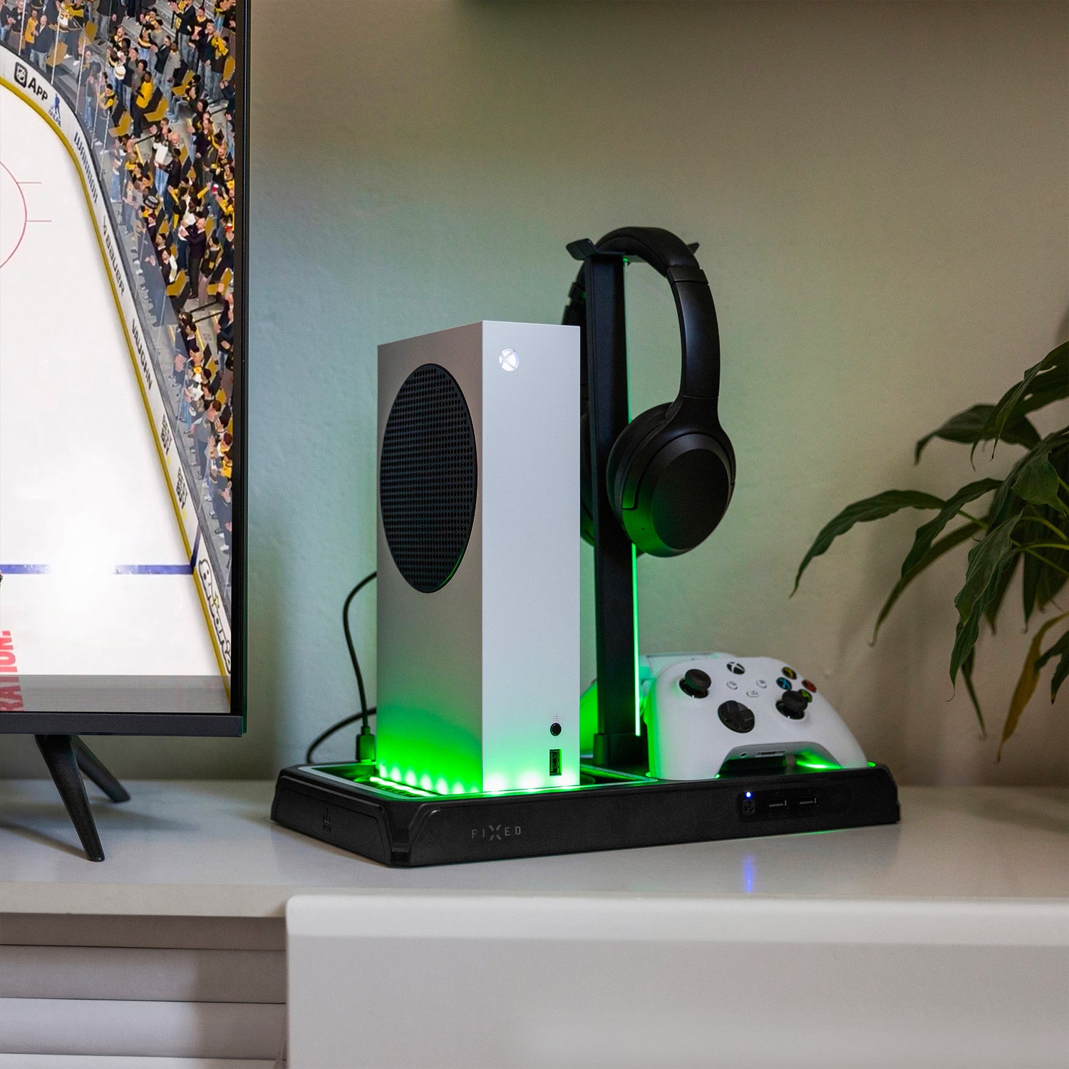 Multifunkční stanice zajistí odvětrání konzole Xbox, nabije ovladače, najde místo pro odložení sluchátek a doladí atmosféru LED podsvícením. A pokud potřebuješ nabíjet jen ovladače, je tu praktický dok, kde nabiješ dva zároveň.