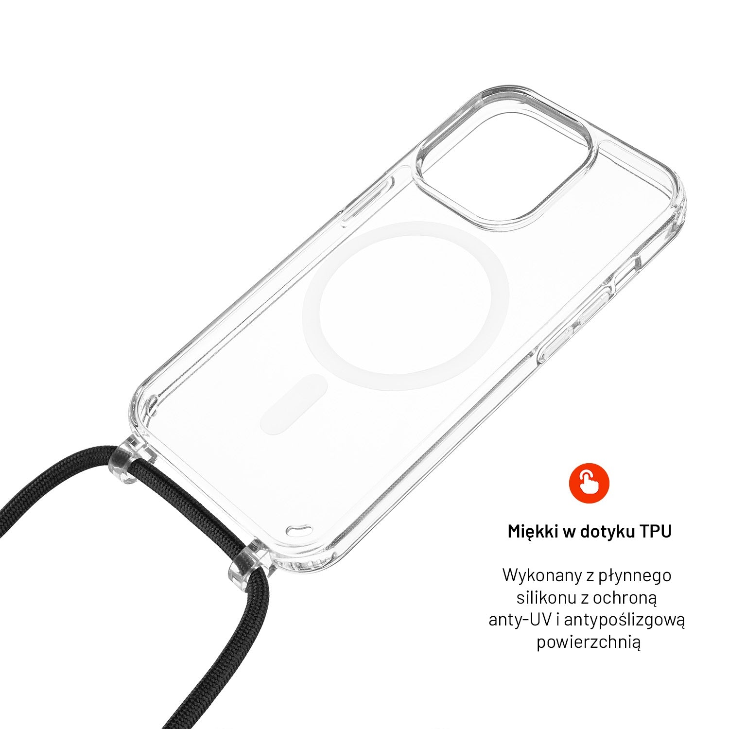 W pełni przezroczystą konstrukcję FIXED MagPurity uzupełniają czarne detale w postaci metalowych osłon przycisków sterujących i pierścienia MagSafe z tyłu obudowy.