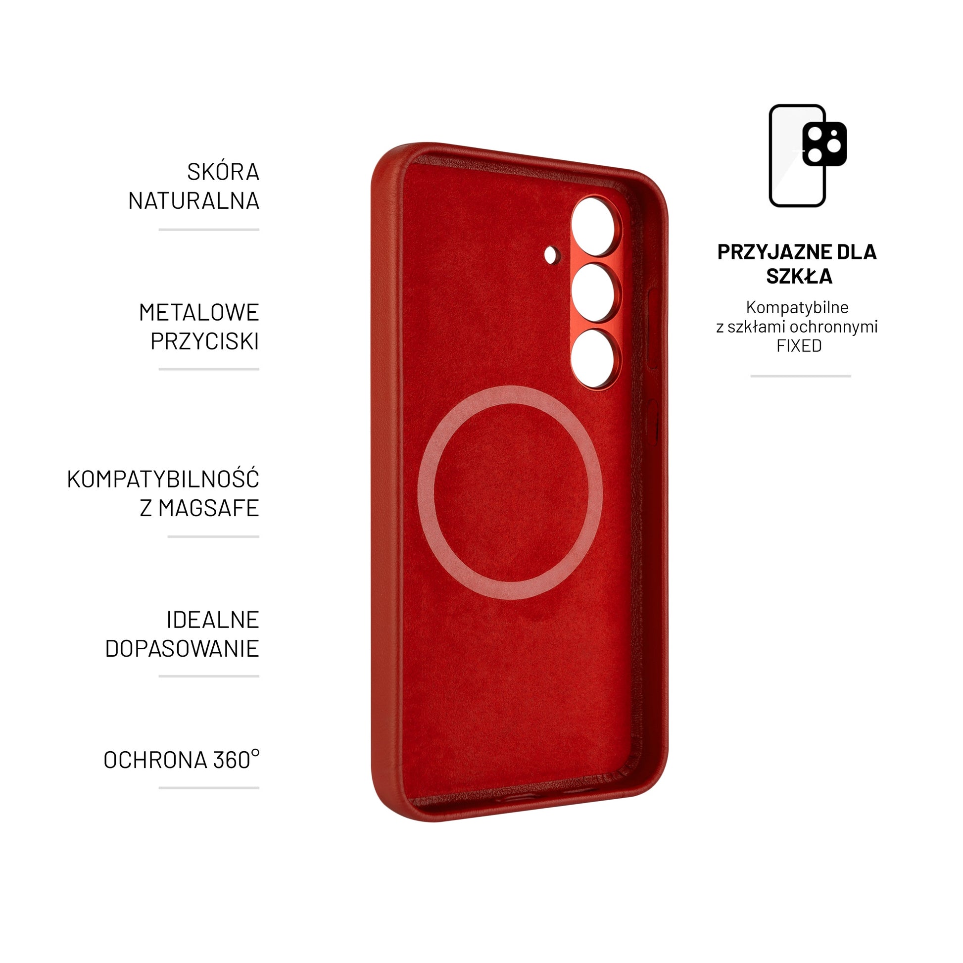 Skórzany pokrowiec na tył FIXED MagLeather z obsługą MagSafe dla Samsung Galaxy S24, czerwony