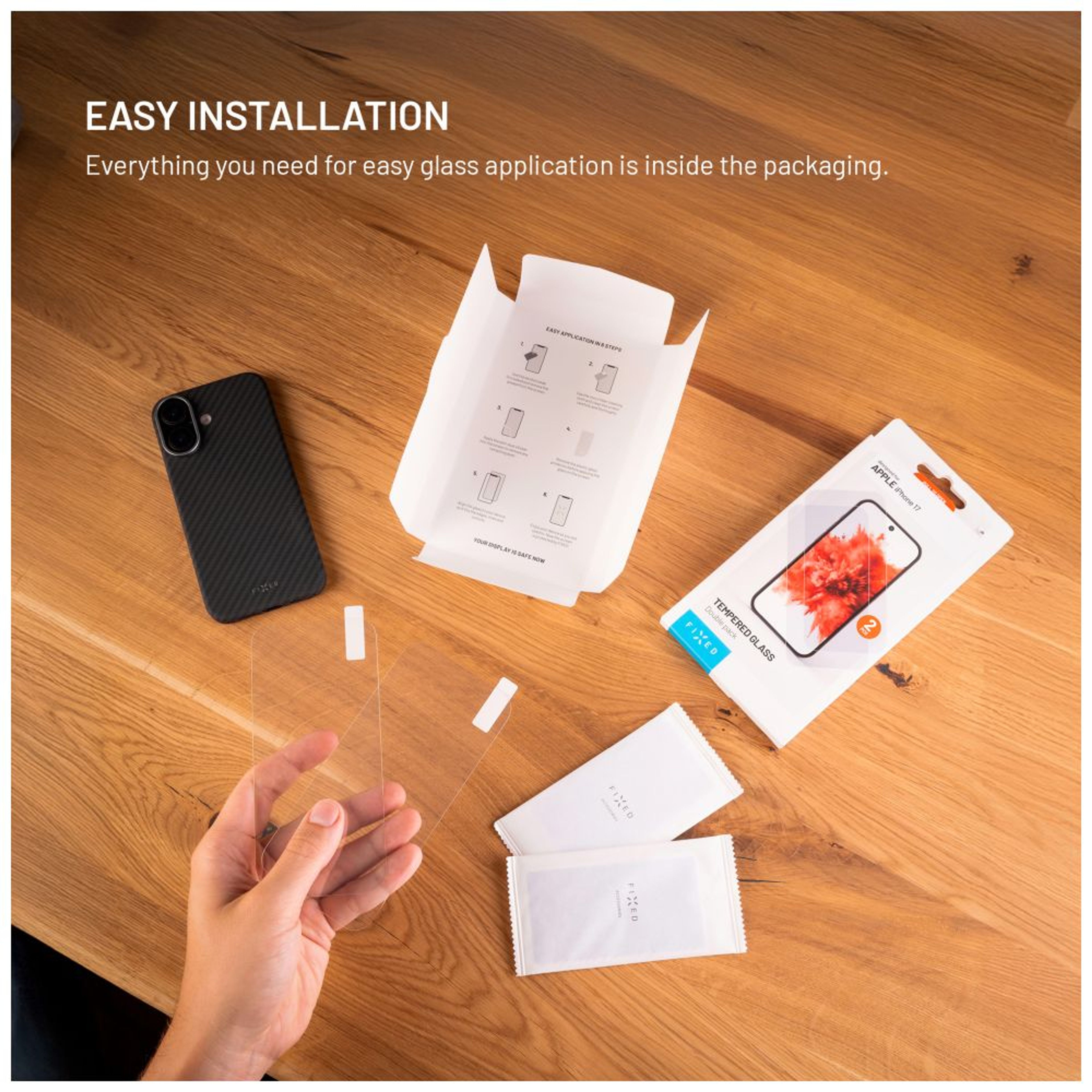 Vysoce kvalitní tvrzené sklo FIXED o tloušťce 0,33 mm poskytuje maximální ochranu displeje vašeho zařízení. Zachovává vysokou citlivost dotyku i 100% průhlednost, takže displej zůstává stejně ostrý jako bez skla. Oleofobní povrchová úprava odpuzuje mastnotu a otisky prstů, čímž udržuje displej čistý a lehce udržovatelný. Sklo spolehlivě chrání displej před poškrábáním, nečistotami i tvrdšími nárazy. Balení obsahuje dvě skla a instalace je snadná díky přiložené aplikační sadě.