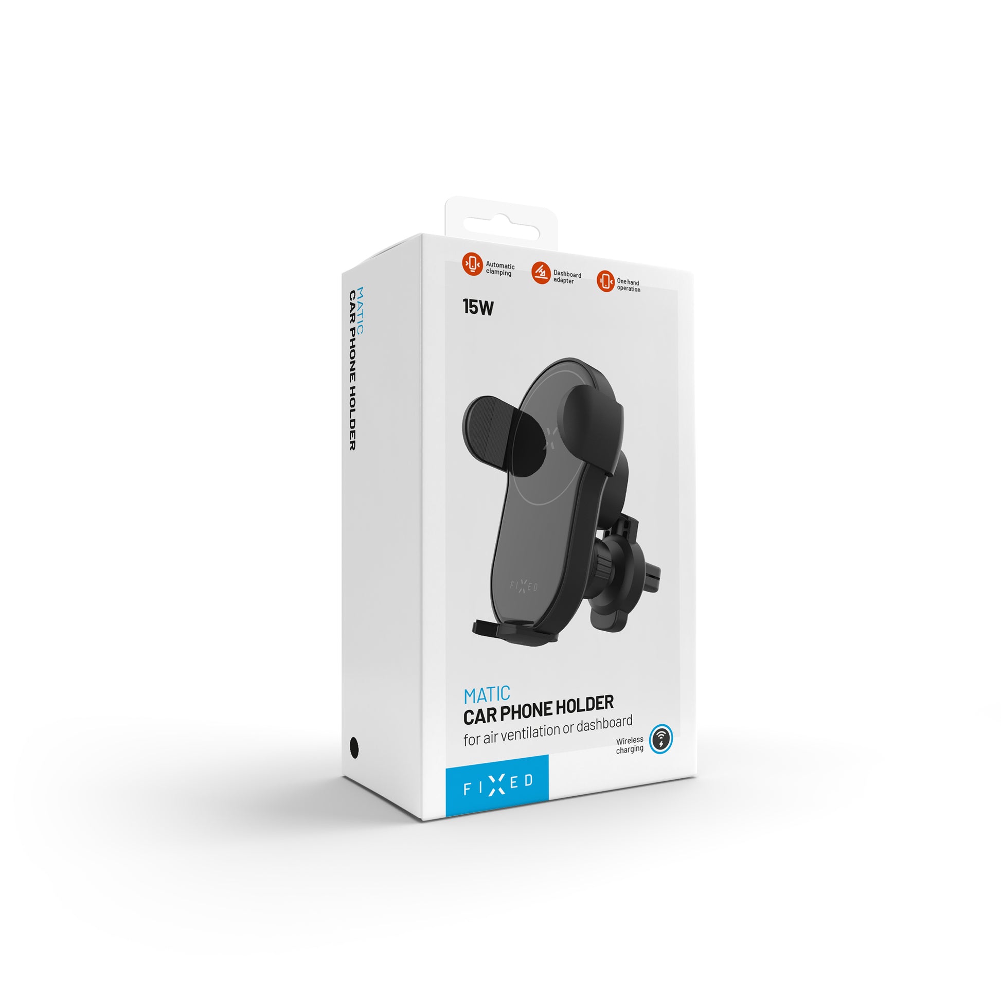 FIXED Matic spojuje chytrý držák telefonu a výkonnou bezdrátovou nabíječku. Váš smartphone tak bude při jízdě nejen bezpečně uchycený, ale zároveň se bleskově dobíjí výkonem až 15W. Ideální řešení pro každého, kdo tráví hodně času na cestách a nechce ztrácet čas hledáním kabelu.
