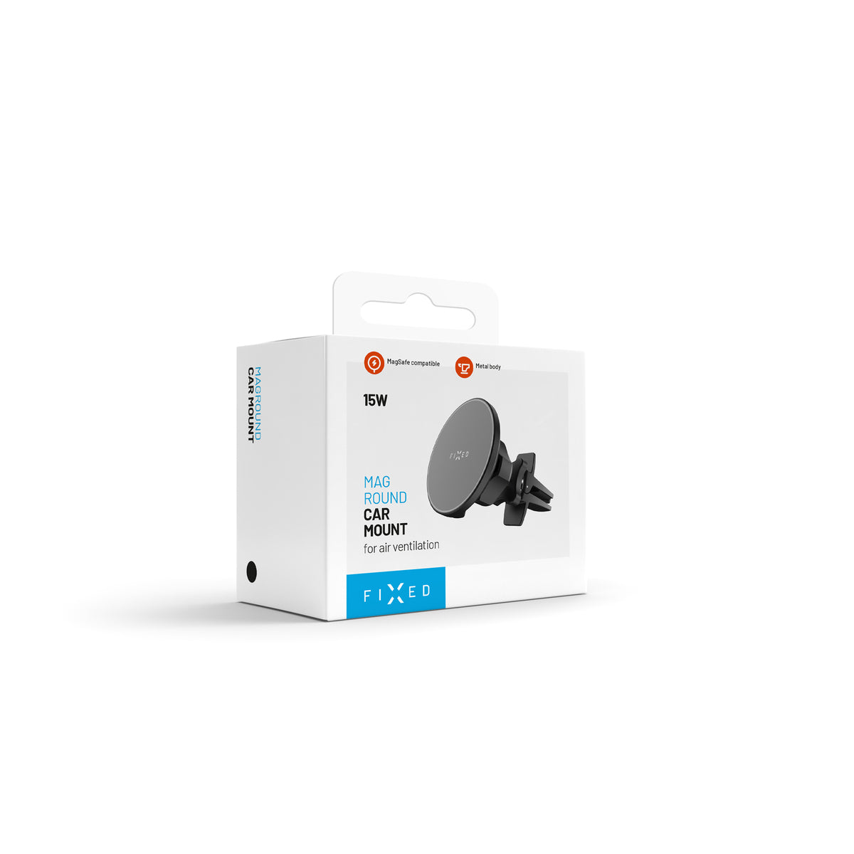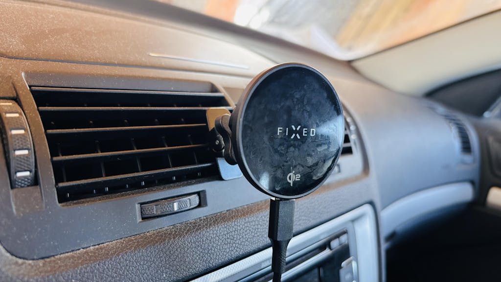 Magnetický držiak do auta FIXED MagRound 2 s bezdrôtovým nabíjaním spoľahlivo udrží váš telefón na mieste a zároveň ho rýchlo dobije počas jazdy. Je navrhnutý špeciálne pre iPhony s podporou MagSafe alebo pre telefóny vybavené kompatibilným MagSafe krytom. Vďaka presnému rozmiestneniu magnetov na ploche držiaka stačí telefón jednoducho priložiť – MagSafe magnety sa okamžite prichytia a začne sa bezdrôtovo nabíjať. Držiak je vybavený najnovšou bezdrôtovou technológiou Qi2, ktorá zaisťuje efektívne a bezpečné nabíjanie s výkonom až 15 W. Magnetická plocha držiaka je navrhnutá tak, aby nezasahovala do oblasti fotoaparátu, takže nehrozí jeho poškriabanie či neúplné priľnutie. Držiak sa ľahko inštaluje do každej ventilácie auta pomocou klieští so spätným háčikom, ktorý sa zachytí za lamelu ventilácie a bráni jeho vypadnutiu. Pomocou otočného kĺbu si navyše ľahko nastavíte ideálny pozorovací uhol jednou rukou. Štýlové kovové telo v čiernej farbe a kompaktné rozmery robia z držiaka elegantný doplnok interiéru každého vozidla. FIXED MagRound 2 je ideálnym spoločníkom na cesty, ktorý udrží váš telefón bezpečne na mieste a vždy pripravený s dostatkom energie.
