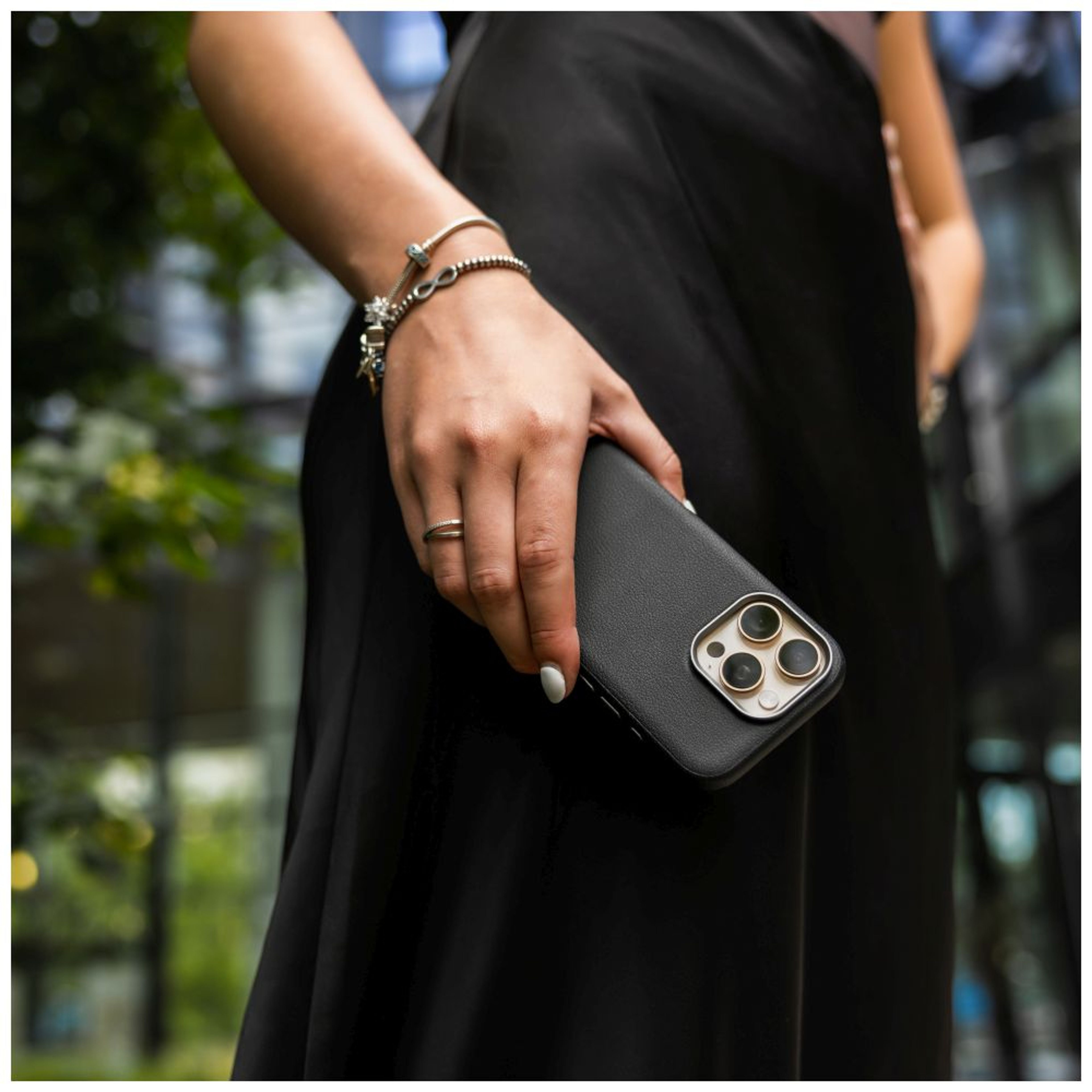 Zadný kryt FIXED MagLeather s podporou MagSafe kombinuje elegantný dizajn a praktickú ochranu telefónu. Povrch z kvalitnej vegánskej kože na prvý pohľad aj dotyk verne pripomína pravú kožu, je odolný proti poškriabaniu a dlhodobo si zachováva svoj štýlový vzhľad. Kryt je vybavený integrovanými magnetmi pre presné a bezpečné uchytenie k MagSafe nabíjačkám, držiakom aj ďalším MagSafe doplnkom. Vďaka tenkému telu a zosilneným rohom kryt spoľahlivo chráni telefón pred bežnými nárazmi a pádmi bez toho, aby zväčšoval jeho rozmery. Dizajn krytu navyše dopĺňajú kovové detaily, ako rámik okolo fotoaparátu či krytky ovládacích tlačidiel. FIXED MagLeather je ideálnou voľbou pre každého, kto hľadá spoľahlivú ochranu telefónu v elegantnom prevedení.
